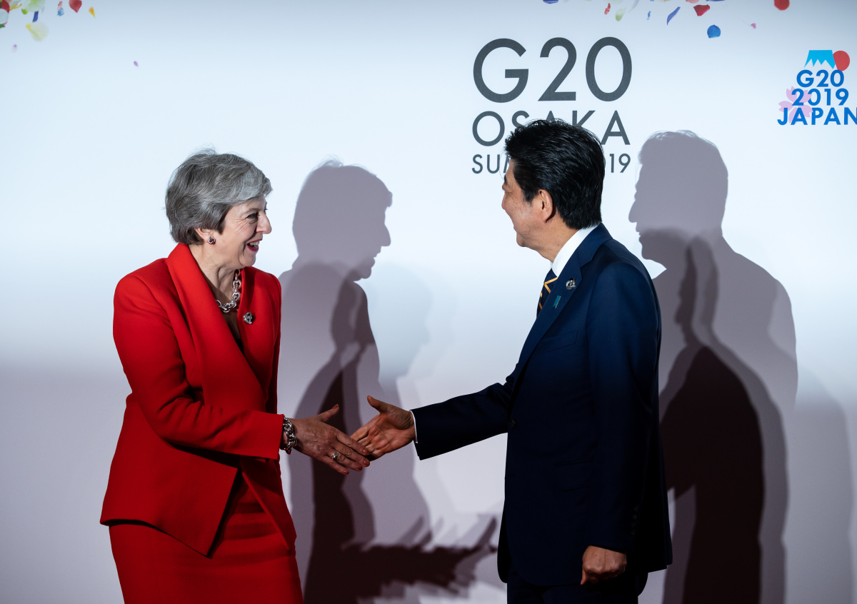 Премьер-министр Японии Синдзо Абэ приветствует премьер-министра Великобритании Терезу Мэй на саммите G20 Премьер-министр Японии Синдзо Абэ приветствует премьер-министра Великобритании Терезу Мэй на саммите G20 Фото: Bernd von Jutrczenka/dpa/Global Look Press