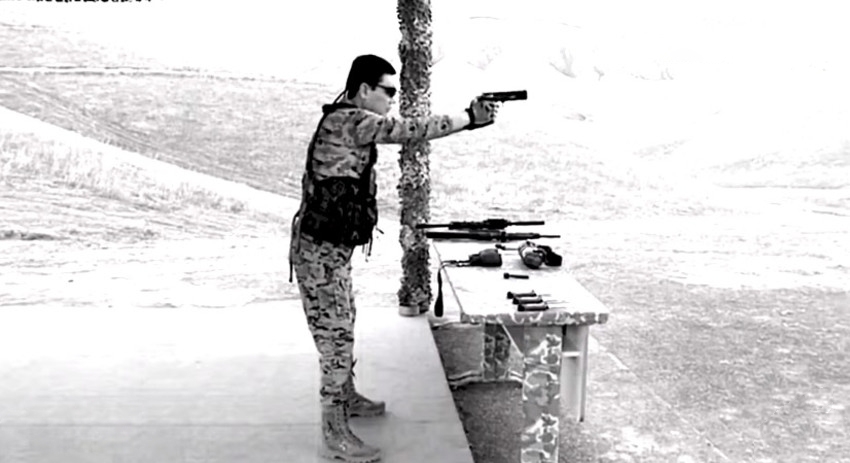 На записи можно увидеть, как президент Туркмении приезжает на место на тюнингованном автомобиле, наблюдает за учениями и лично проверяет боевую экипировку и оборудование.