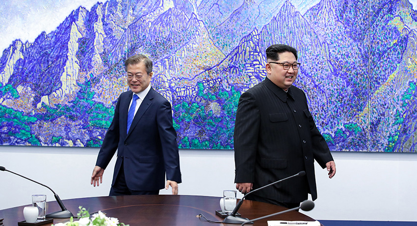 Президент Республики Корея Мун Чжэ Ин и лидер Северной Кореи Ким Чен Ын Президент Республики Корея Мун Чжэ Ин и лидер Северной Кореи Ким Чен Ын Фото: Global Look Press/Inter-Korean Summit Press Corps