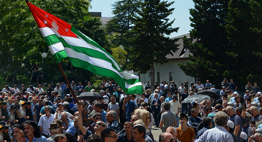 Показательно, что Хаджимба, который заявляет сейчас о важности проведения выборов в соответствии с Конституцией, сам стал президентом в результате проведения досрочных выборов и массовых протестов в 2014 году. Тогда несколько сотен демонстрантов выбили двери и окна президентской администрации в Сухуме, после чего в абхазской столице начались беспорядки. Президент Александр Анкваб был вынужден досрочно уйти в отставку. Во время переходного периода власть перешла в руки созданного на скорую руку Координационного совета оппозиции – органа, не предусмотренного Конституцией Абхазии. Хаджимба был выдвинут кандидатом в президенты. Его соперником и тогда был Аслан Бжания, но в 2014-м году Хаджимбе удалось набрать в первом туре 50,1% голосов, заручившись поддержкой абхазских националистов (противников в первую очередь грузинского этнического меньшинства в республике) и сторонников более глубокой интеграции Сухума и Москвы. Сейчас сотни человек протестуют в абхазской столице уже против Хаджимбы.