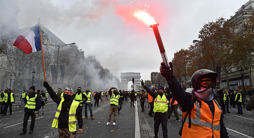 Президент Республики Эммануэль Макрон в своём Twitter осудил насилие, совершённое демонстрантами на Елисейских полях, и поблагодарил полицию за её «профессионализм».