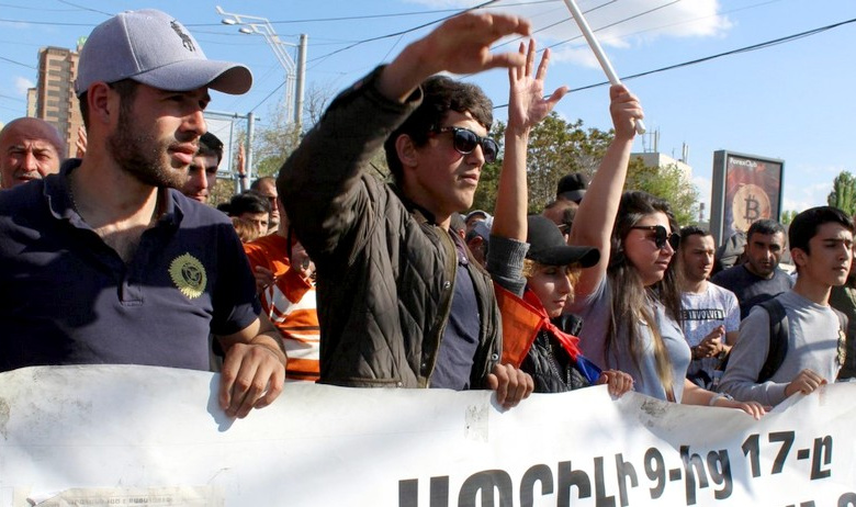 Жители Армении в очередной день вышли на улицы в знак протеста выдвижения кандидатуры бывшего главы Армении Сержа Саргсяна на пост премьера.
