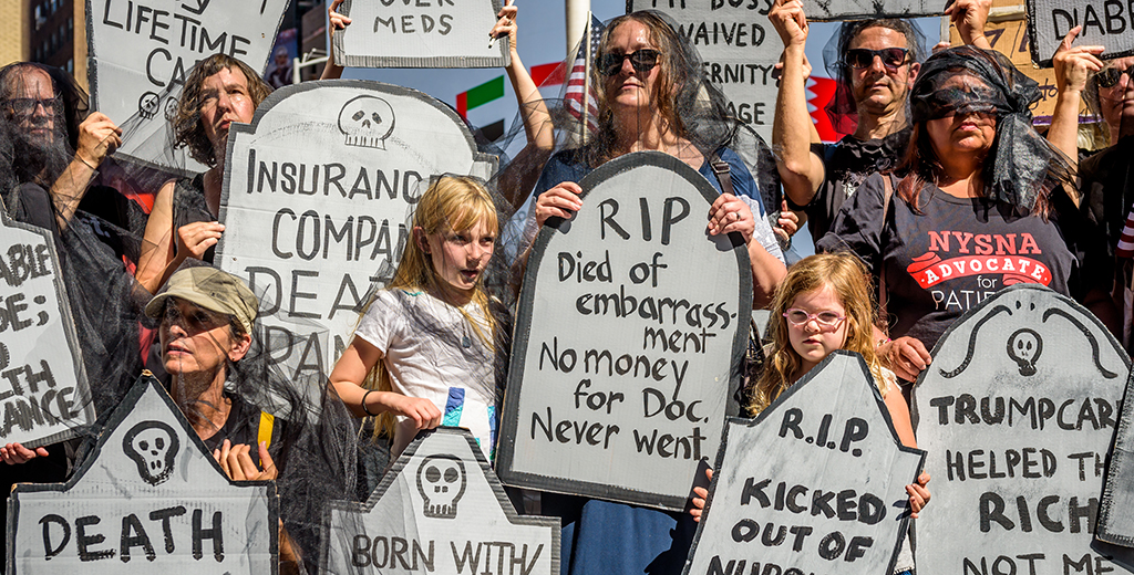 Демократы годами борются за то, чтобы медицинская страховка была доступна всем, в том числе через субсидии из бюджета для малоимущих и создание дешёвых страховых планов. Законченный вид эта политика обрела в реформе Барака Обамы, неофициально названной Obamacare. Республиканец Дональд Трамп, открытый противник этой политики, первым делом на посту президента отменил большинство её положений. Теперь умеренные демократы предлагают возродить Obamacare.