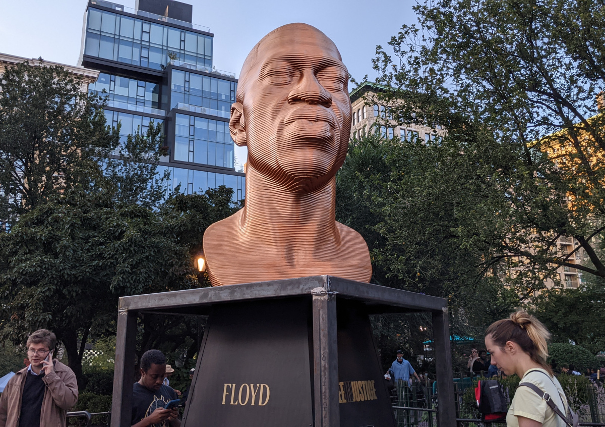 Накануне приблизительно в 10:00 по местному времени (17:00 по мск) неизвестный на скейтборде подъехал к бюсту Флойда, установленному на площади Юнион-сквер в Нью-Йорке, облил его серой краской и скрылся. Акт вандализма был запечатлён на камеру наружного наблюдения, полицейские занимаются поисками подозреваемого. Установленные рядом изваяния афроамериканки Брионны Тейлор, которая была убита в марте во время полицейского рейда, и ушедшего из жизни в прошлом году конгрессмена Джона Льюиса не пострадали, пишет New York Post.