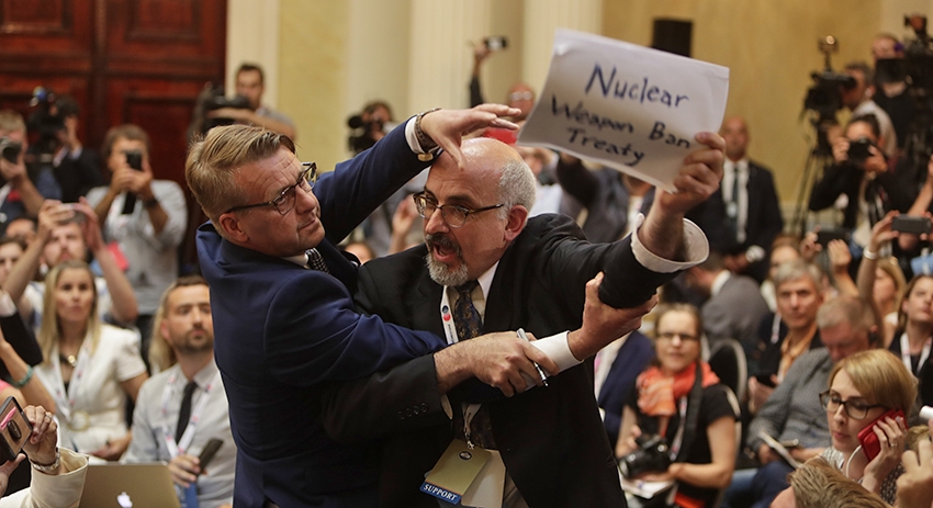 Не обошлось без инцидентов. Журналист, которого, по данным CNBC, зовут Сэм Хусейни, был жестко выведен из зала для пресс-конференции американской секретной службой.
