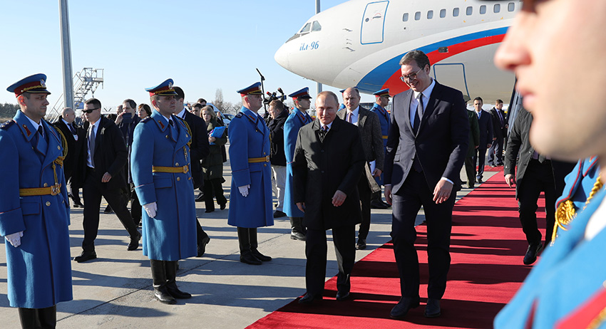 Лидеры приехали на российском лимузине Aurus. У входа на военное кладбище политиков встречали жители Белграда, пишет ТАСС. В республике расположены девять масштабных мемориалов советским воинам: в Белграде, Суботице, Сомборе, Зренянине, Вршаце, Пожареваце, Горни-Милановаце, Ягодине и Заечаре.