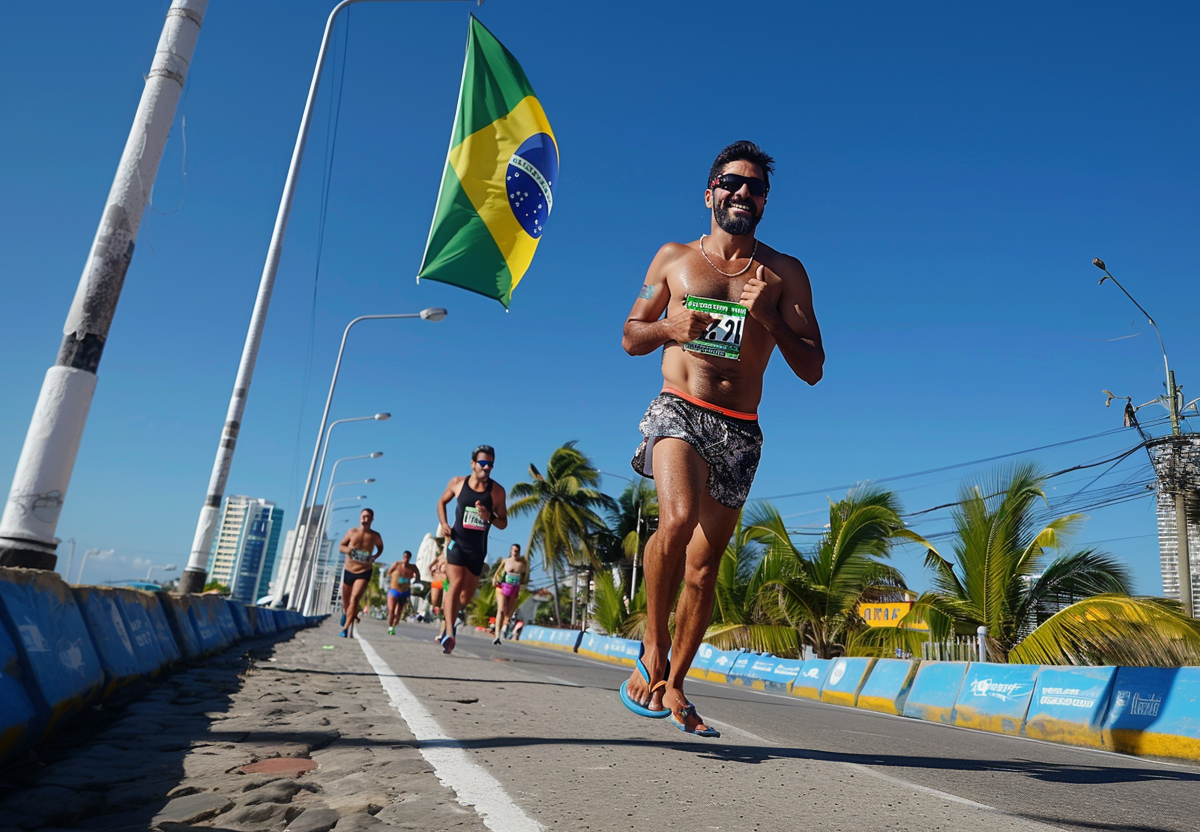 В Бразилии пьяный мужчина в шлепках почти стал победителем забега