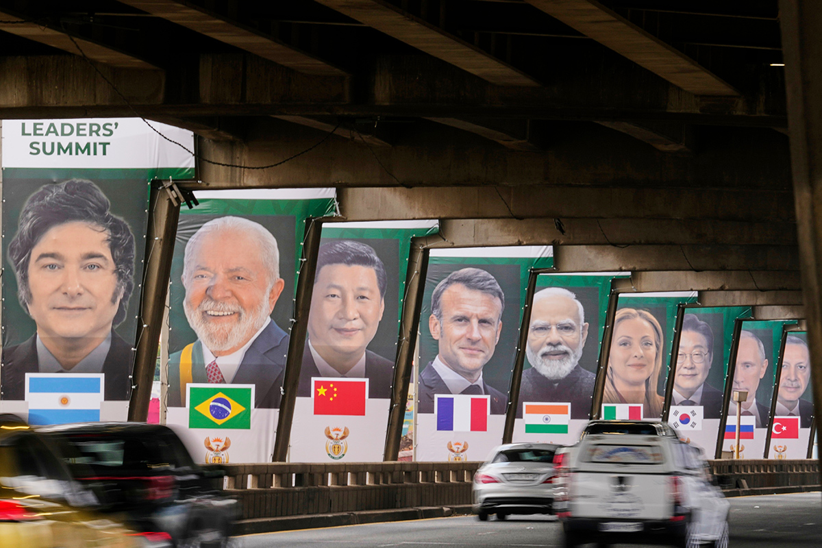 Баннеры с изображением лидеров стран «Большой двадцатки» в Йоханнесбурге Баннеры с изображением лидеров стран «Большой двадцатки» в Йоханнесбурге Фото: Themba Hadebe/AP/ТАСС