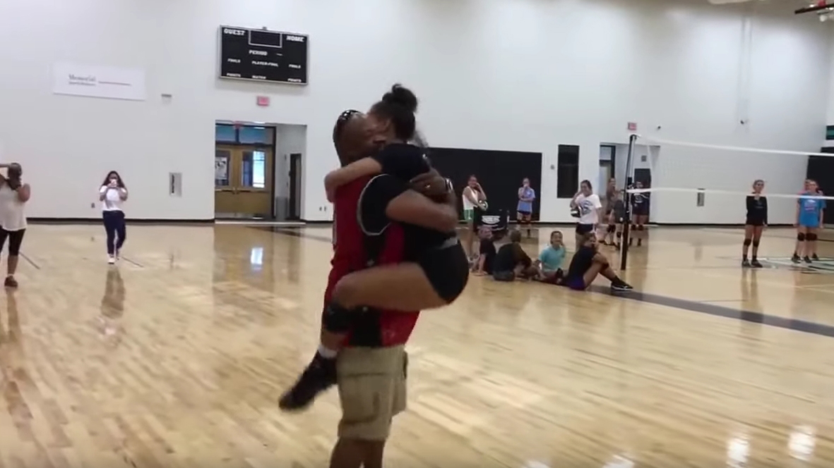 Видео встречи отца и дочери-подростка, которые не виделись больше года, растрогало пользователей Сети. Мужчина решил сделать ребёнку сюрприз и внезапно заглянул на её тренировку по волейболу.