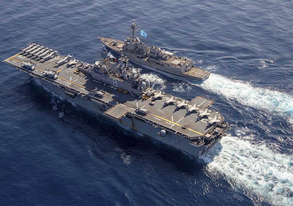 На кадрах видно, как китайский корабль на большой скорости сближается с эсминцем USS Chung-Hoon на расстояние менее 150 метров. При этом корабль ВМС НОАК «пронесся перед носом» эсминца США, которому пришлось сбросить скорость.