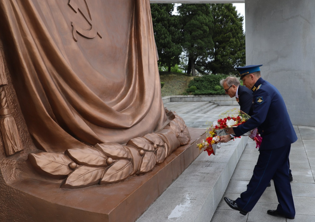 Об этом сообщается на странице дипмиссии в Facebook. В связи с введёнными в столице Северной Корее карантинными ограничениями в торжественном мероприятии поучаствовали только посол РФ в КНДР Александр Мацегора и военный атташе Валерий Исаенко с жёнами. Дипломаты затем посетили братские могилы советских солдат и памятник советским лётчикам.