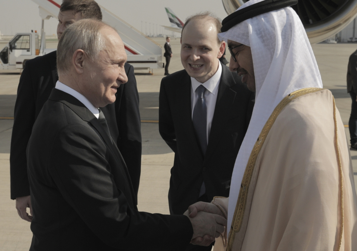 Ранее самолет Путина приземлился в Абу-Даби. У трапа главу РФ встречал министр иностранных дел ОАЭ Абдалла Бен Заид Аль Нахайян. После этого российский лидер на Aurus поехал по улицам города на главную встречу.