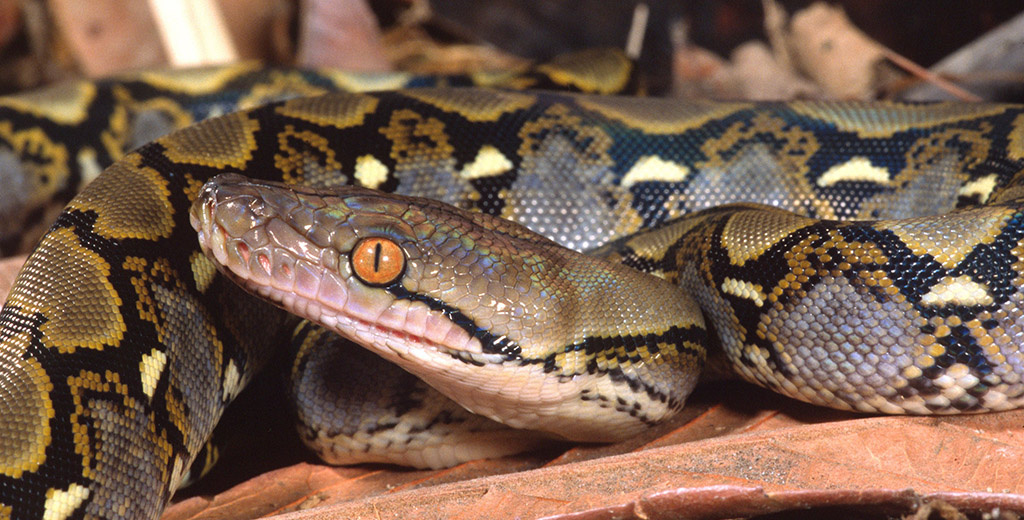 Сетчатый питон — неядовитая змея. Длина крупнейших особей может достигать семи метров в длину.