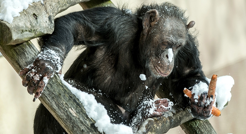 Сломанная ветвь дерева помогла как минимум двум шимпанзе сбежать из вольера в зоопарке Белфаста, Северная Ирландия. Животные использовали палки в качестве лестницы.