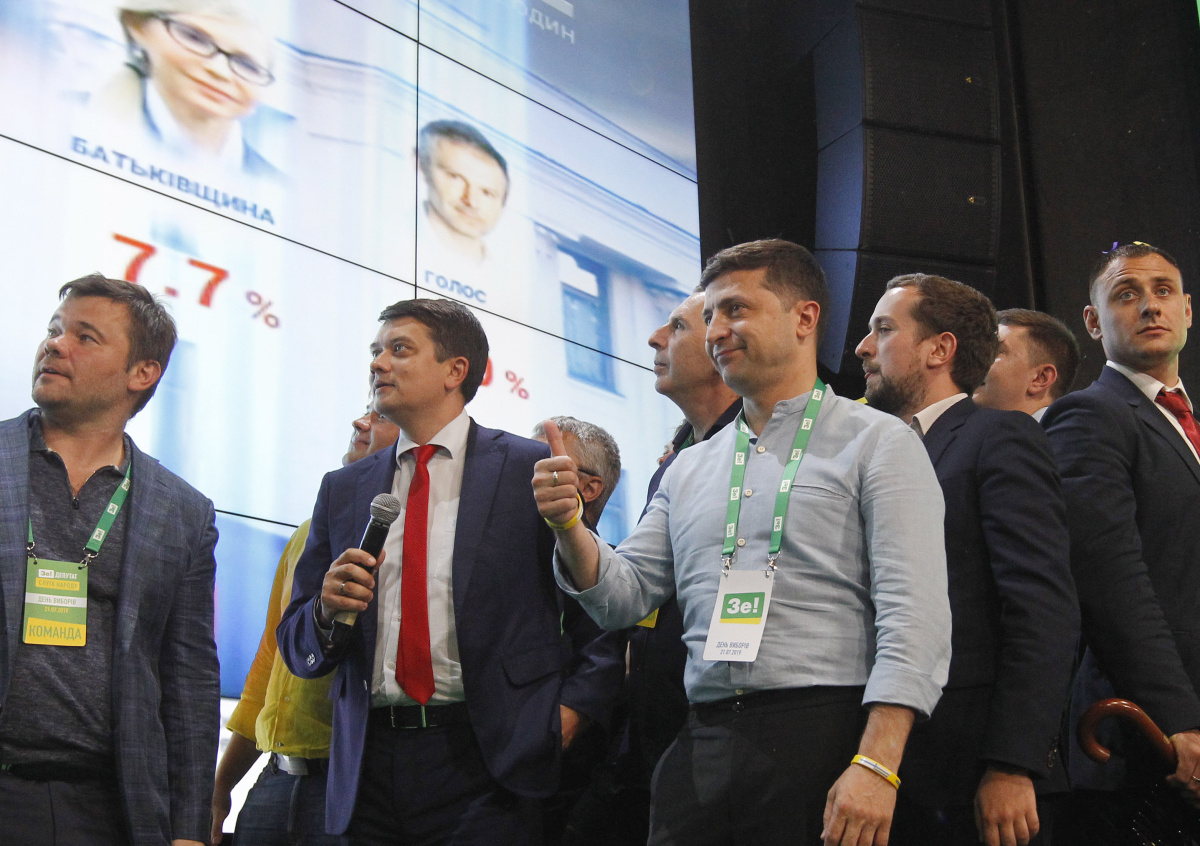 Помимо партии Зеленского, которая собрала 42,90% голосов, в списке «Оппозиционная платформа — За жизнь» (ОПЗЖ) — 12,79%, «Европейская солидарность» — 8,70%, «Батькивщина» — 8,08% и «Голос» — 6,40%.