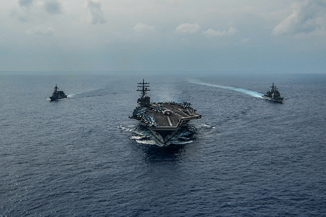 Авианосцы USS Ronald Reagan и USS Nimitz возглавили ударные группы, которые США направили в Южно-Китайское море, где проводит военные манёвры Китай.
