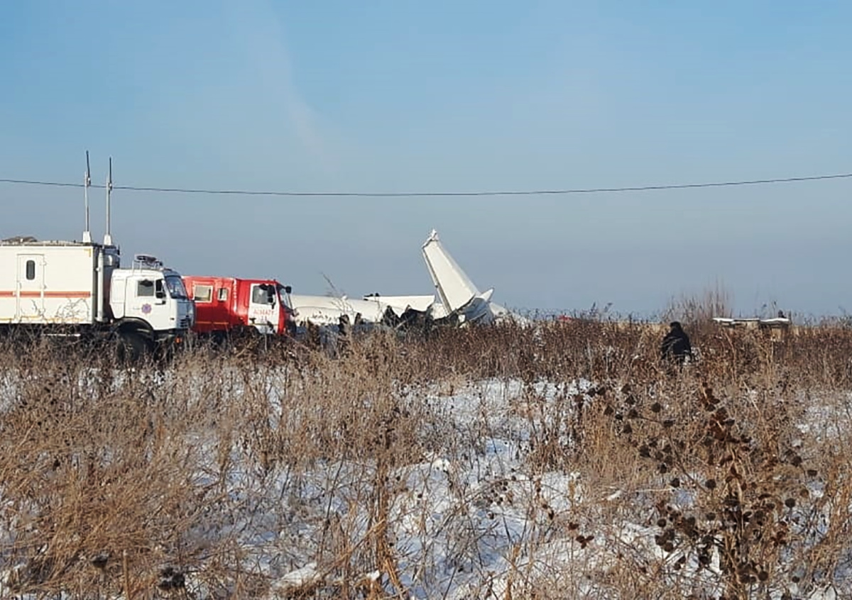 Самолёт Fokker 100, выполнявший рейс Алма-Ата — Нур-Султан, потерял высоту после вылета из аэропорта, пробил бетонное ограждение и врезался в двухэтажное здание.