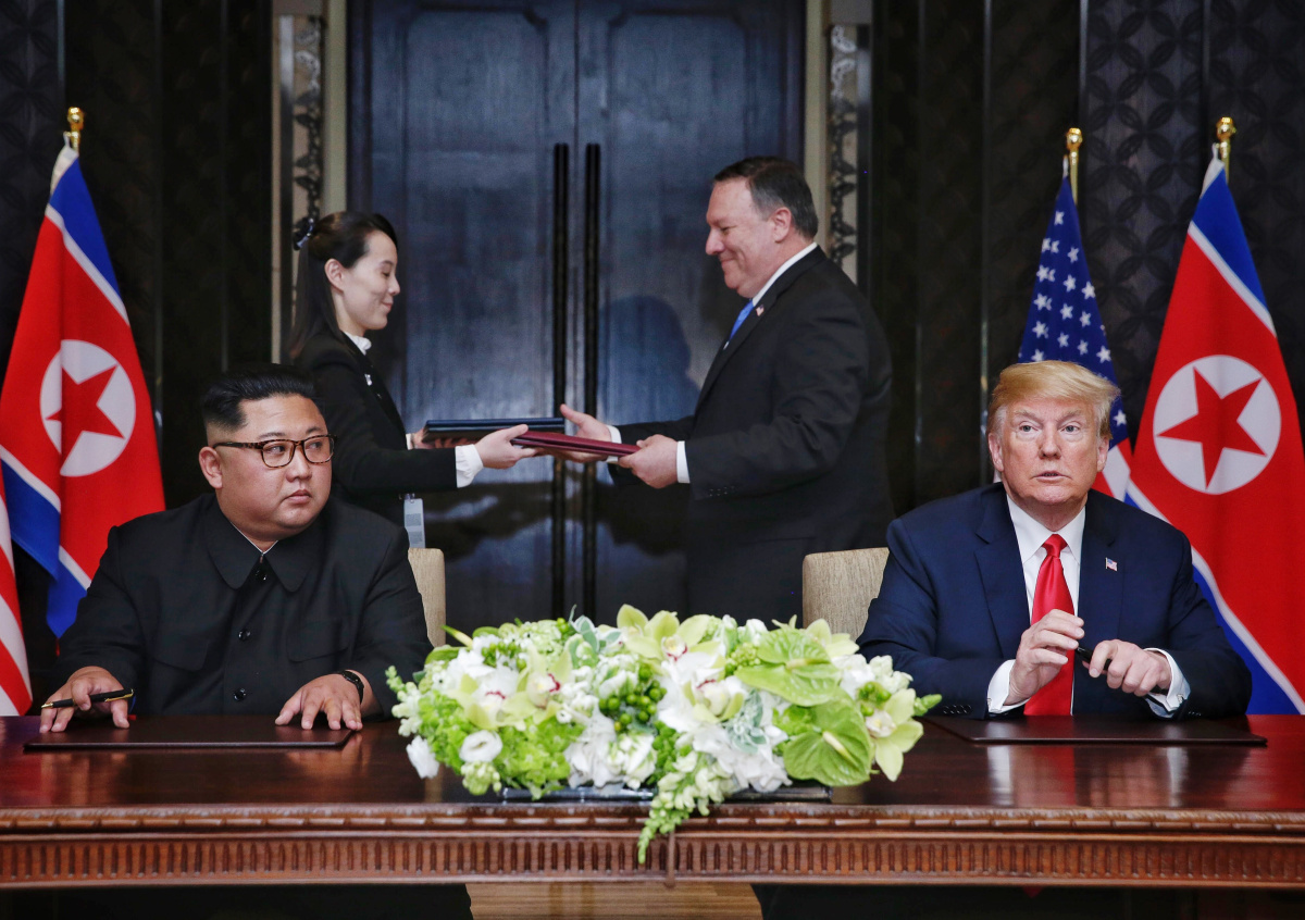 Историческая встреча Дональда Трампа и Ким Чен Ына состоялась 12 июня в Сингапуре. Стороны подписали соглашение, в котором Трамп гарантировал безопасность КНДР.