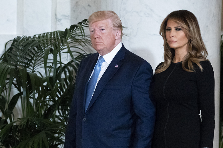 Американский лидер Дональд Трамп выступил перед сторонниками в Вашингтоне на фоне искажённого изображения президентской печати. Орёл в центре символа был с двумя головами вместо одной, а в когтях птица держала клюшки для гольфа вместо стрел.