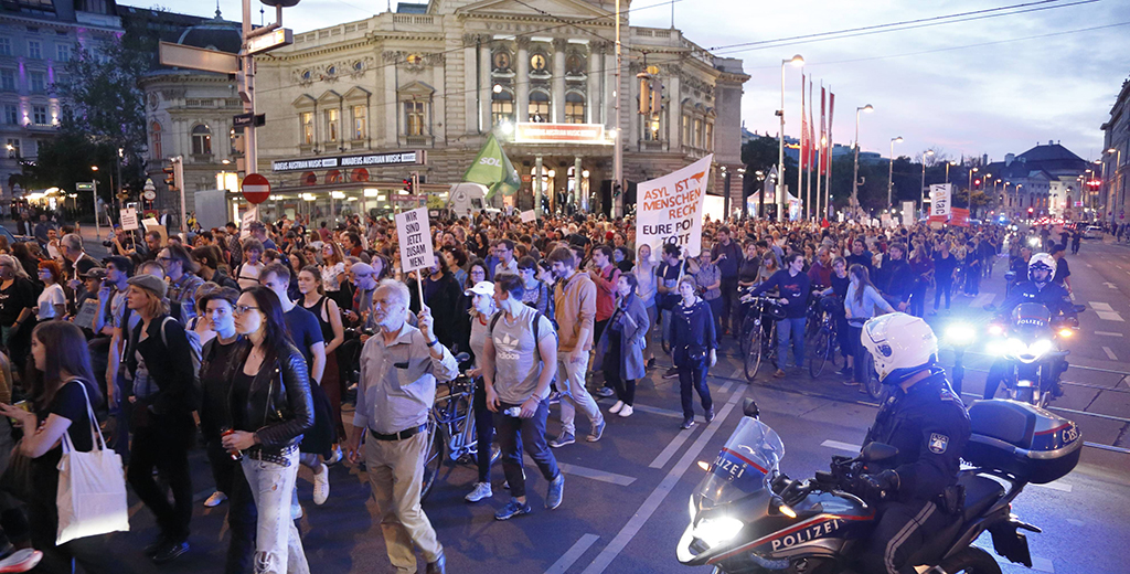 В спонтанной демонстрации на Балльхаусплатц в настоящий момент принимают участие 4–5 тысяч человек. Демонстрация проходит мирно. 150 полицейских из Вены, Нижней и Верхней Австрии обеспечивают безопасность на месте, — говорится в сообщении полиции в Twitter.