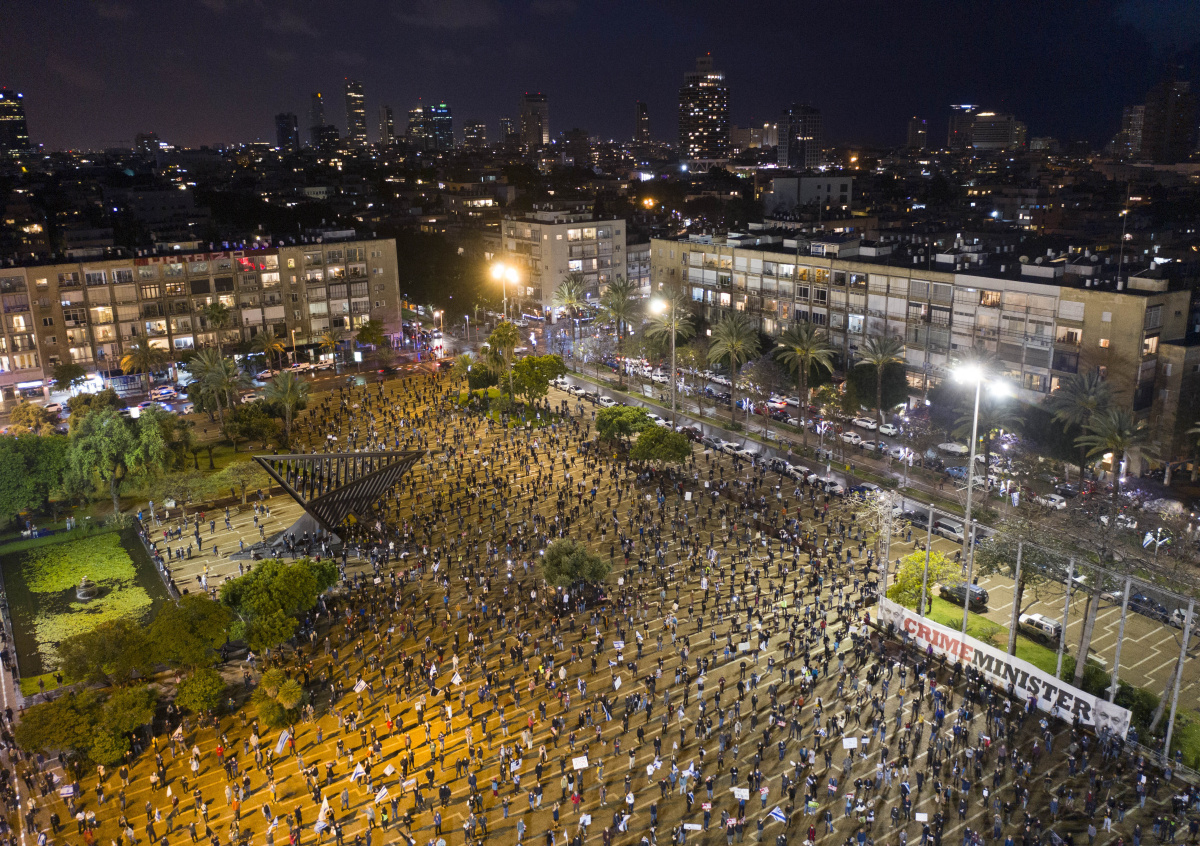 Многотысячная акция протеста проходит в Тель-Авиве. Её участники выступают против соглашения о коалиционном правительстве, заключённом премьером Биньямином Нетаньяху и лидером оппозиции Бени Ганцем.