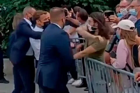 Макрон получил пощёчину, когда подошёл к местным жителям в департаменте Дром. Один из них — мужчина с густой чёрной бородой в маске — взял одной рукой французского лидера за руку, а другой ударил политика по лицу. После этого нападавшего скрутила охрана.