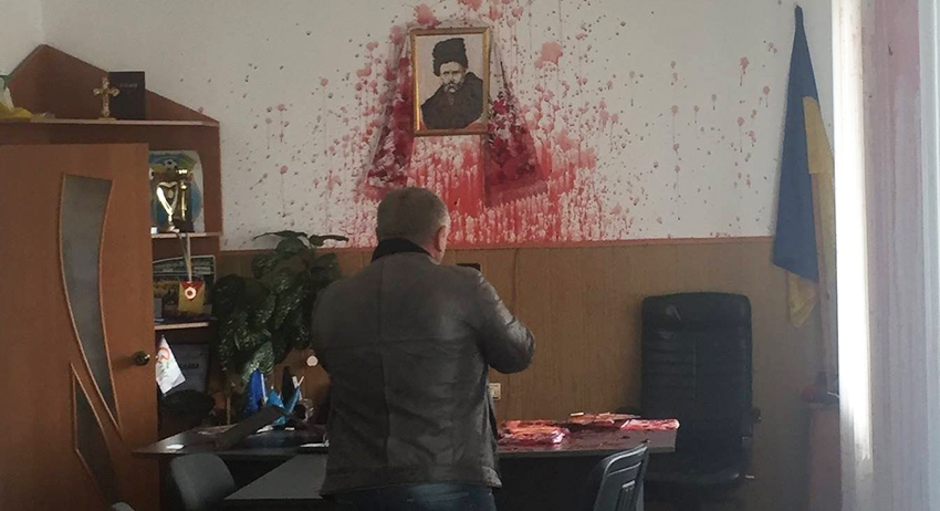 Активисты нагрянули в кабинет мэра украинского города Гнивань Владимира Кулешова и облили его красной жидкостью. Они обвинили его в «торговле на крови защитников», рассказал депутат Андрей Вербицкий.