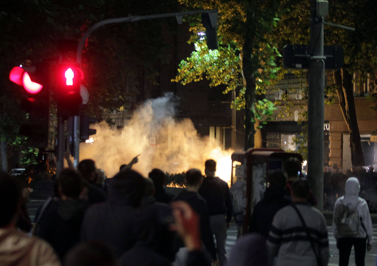 Участники акций протеста в столице Сербии предприняли попытку прорыва в здание скупщины (парламента). Полиция разгоняет их слезоточивым газом и светошумовыми гранатами.