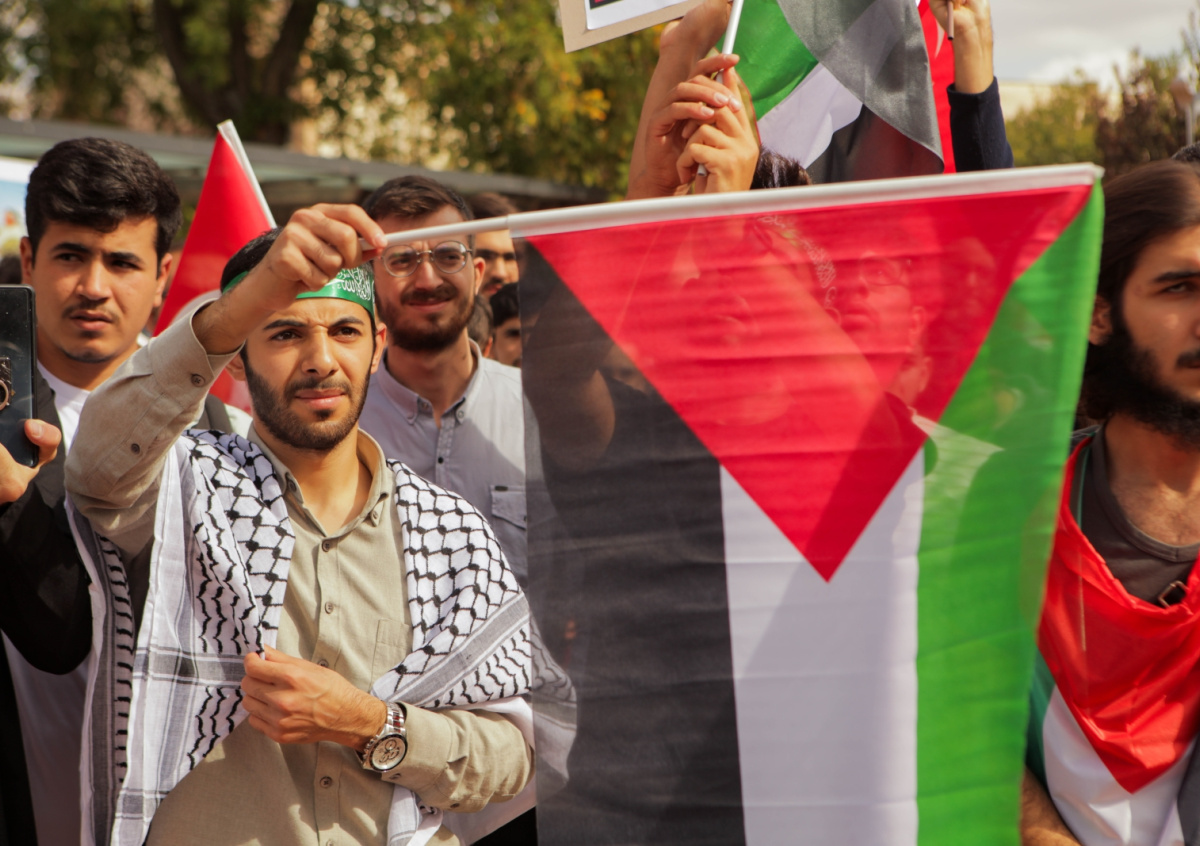 Мы осуждаем государство-убийцу Израиль, который совершает гнусные преступления, в частности осуществил удар по больнице в Газе, который привел к сотням погибших, — заявил один из участников мероприятия.