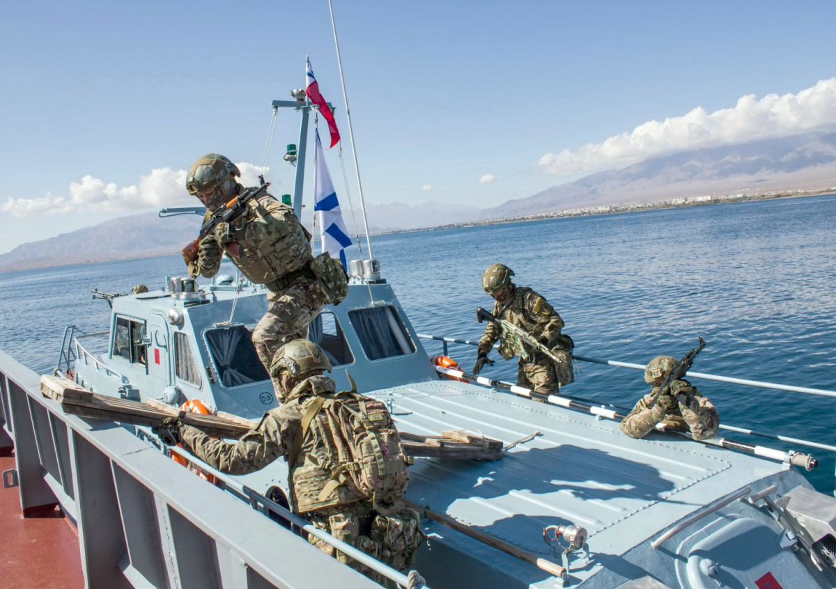 В Киргизии в рамках учения с миротворческими силами ОДКБ «Нерушимое братство — 2023» были впервые задействованы боевые катера и отработаны действия в акватории озера Иссык-Куль, сообщил NEWS.ru пресс-секретарь Объединенного штаба ОДКБ Владислав Щегрикович. Он пояснил, что к патрулированию прибрежной акватории были привлечены шесть катеров группы кораблей охраны водного района, в том числе водолазный катер РВК-1328 «Вице-адмирал Темиров». По легенде «террористы» напали на морской конвой и захватили баржу с грузом радиоактивных отходов и экипажем.