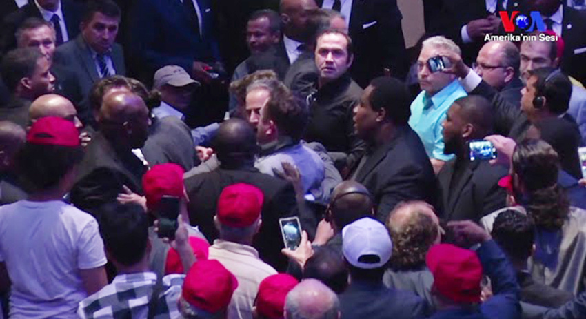Выступление Эрдогана, в ходе которого завязалась драка, проходило на Таймс-сквер в Нью-Йорке. В то время как лидер Турции произносил речь перед национальной диаспорой, из зала начали выкрикивать следующие фразы: «Террорист!» и «Убирайся из моей страны!» Затем другой мужчина развернул флаг Рабочей партии Курдистана.