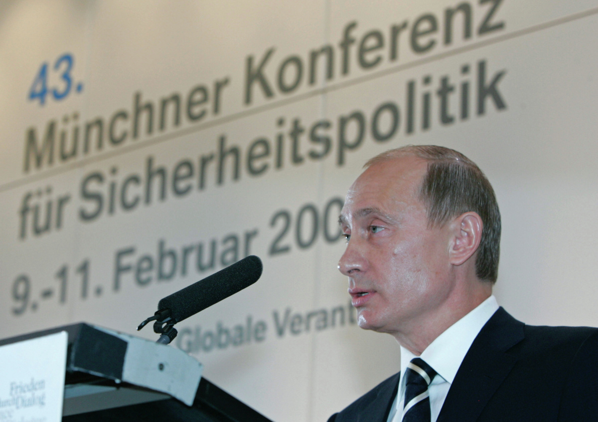 Знаменитую речь на Мюнхенской конференции по безопасности Владимир Путин произнёс десятого февраля 2007 года. В своём выступлении он подверг критике внешнюю политику США и идеи однополярного мира. Также он резко выступил против расширения НАТО и размещения американской ПРО в Восточной Европе.