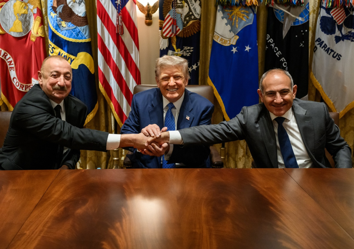 Ильхам Алиев, Дональд Трамп и Никол Пашинян Ильхам Алиев, Дональд Трамп и Никол Пашинян Фото: Daniel Torok/US White House via Global Look P/Global Look Press