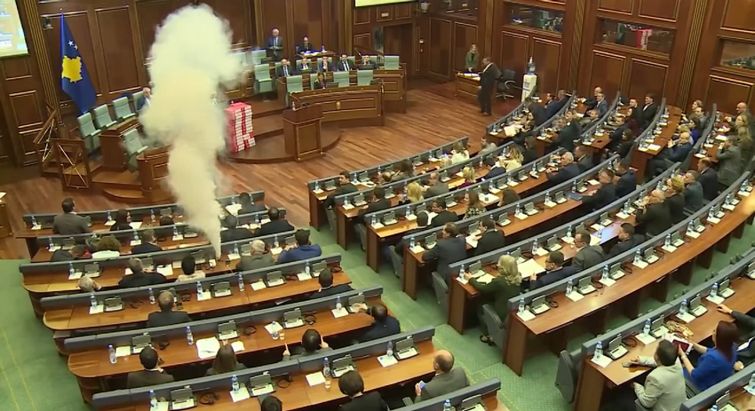 Депутаты радикального оппозиционного движения «Самоопределение» распылили слезоточивый газ в парламенте самопровозглашённой Республики Косово. Таким способом они хотели сорвать утверждение соглашения о признании линии госграницы с Черногорией 2015 года.