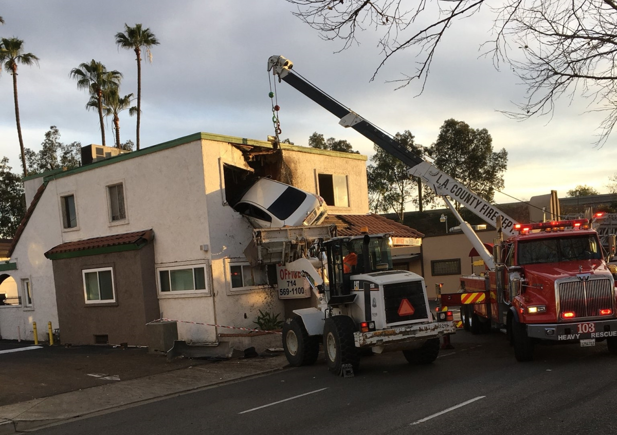 По информации телеканала NBC, инцидент произошел 14 января около 05:25 по местному времени (16:25 мск) в городе Санта-Ана. Автомобиль ударился об отбойник, после чего его отбросило на здание клиники, где он проломил стену на втором этаже и загорелся.