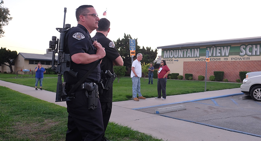Полицейская охрана школы в городе Асуза, Калифорния, США Полицейская охрана школы в городе Асуза, Калифорния, США Фото: Global Look Press/Xinhua/Zhao Hanrong