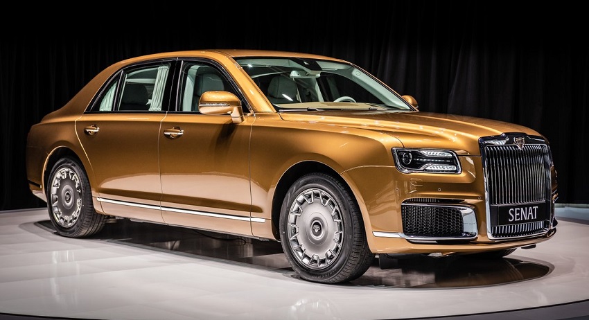 Особенно автор материала отметил бронированный лимузин Aurus Senat L700, который превосходит своими размерами модели Rolls-Royce Phantom и Maybach 62.