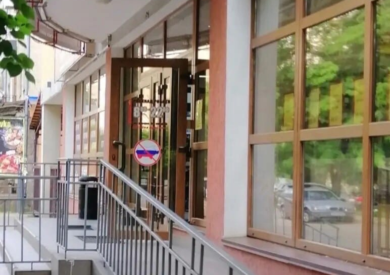 По его словам, на входных дверях магазинов можно увидеть наклейки в виде свиньи, раскрашенной под цвета российского флага, на фоне запрещающего дорожного знака. Эта табличка означает, что россиянам вход запрещён.