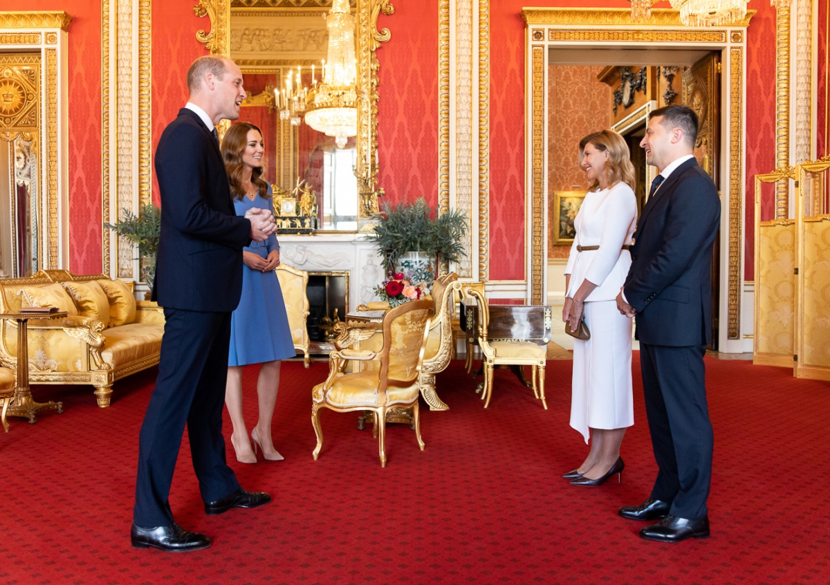 Сегодня герцог и герцогиня Кембриджские приняли в Букингемском дворце президента Владимира Зеленского и первую леди Елену Зеленскую, — сообщается в официальном Twitter принца Уильяма и его супруги герцогини Кейт.