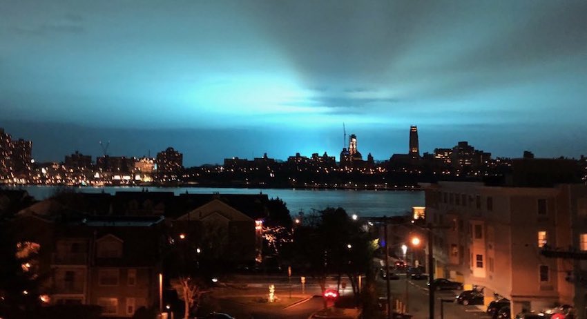 Это дало необычный визуальный эффект. Вечернее небо над городом окрасилось в ярко-голубой цвет. Жители Куинса, крупнейшего района мегаполиса, где расположено предприятие, уже начали выкладывать фото и видео в соцсетях.