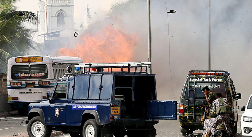 Восемь взрывов прогремели в воскресенье, 21 апреля: три произошли в церквях во время пасхальных служений, три — в дорогих отелях, седьмой взрыв — около столичного зоопарка, восьмой — в районе Дематагода в Коломбо. После инцидента власти задержали 29 человек. В стране введён режим чрезвычайного положения, 23 апреля объявлено днём траура по погибшим. Жертвами терактов стали 310 человек, пострадали 480.