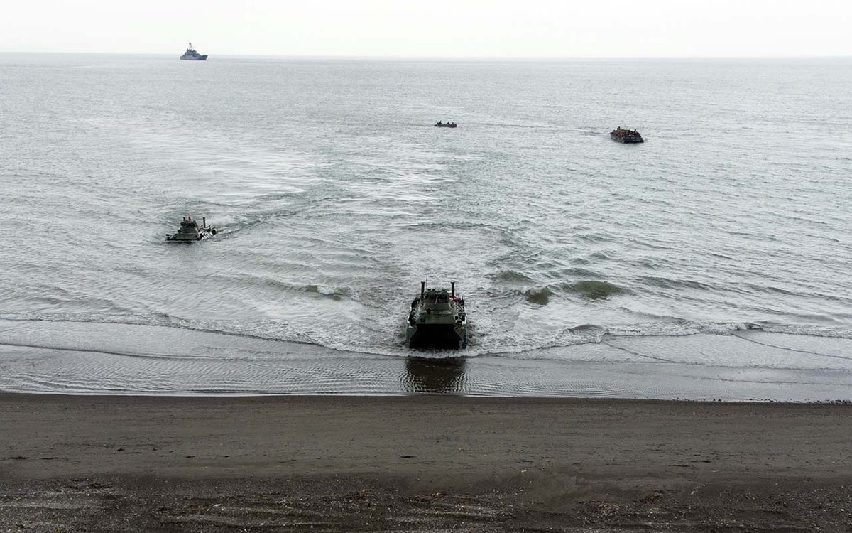 Он подчеркнул, что правительство Японии не намерено мириться с военным присутствием РФ на четырёх северных островах (Южные Курилы), которые государство до сих пор считает своей территорией, несмотря на то, что они находятся в составе России. По его словам, береговая охрана Японии уже предупредила граждан об опасности передвижения в указанном районе.
