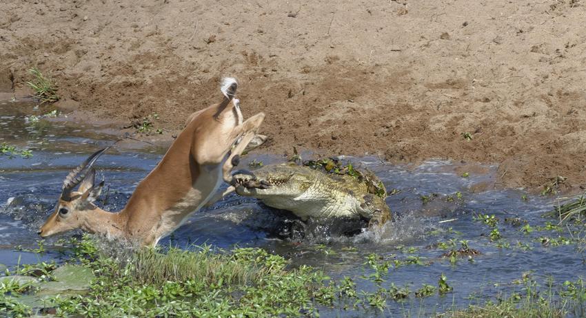 Однако крокодилов неожиданно атаковали гиппопотамы и вынудили отпустить добычу. Через некоторое время антилопа благополучно выбралась на сушу.