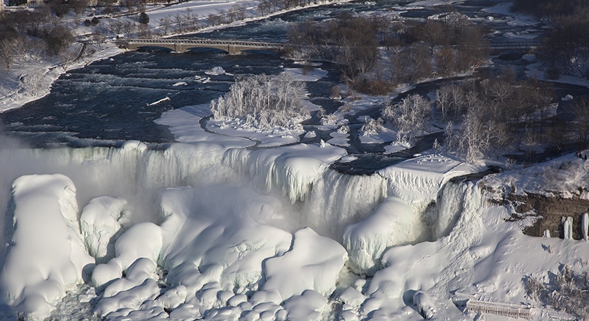 Морозы на северо-востоке Соединённых Штатов Америки привели к частичному обледенению самого мощного в Северной Америке Ниагарского водопада. На регион обрушился снежный шторм, который стал причиной необычного природного явления. 22 января температура на границе Канады и США опускалась до минус 20 градусов по Цельсию.