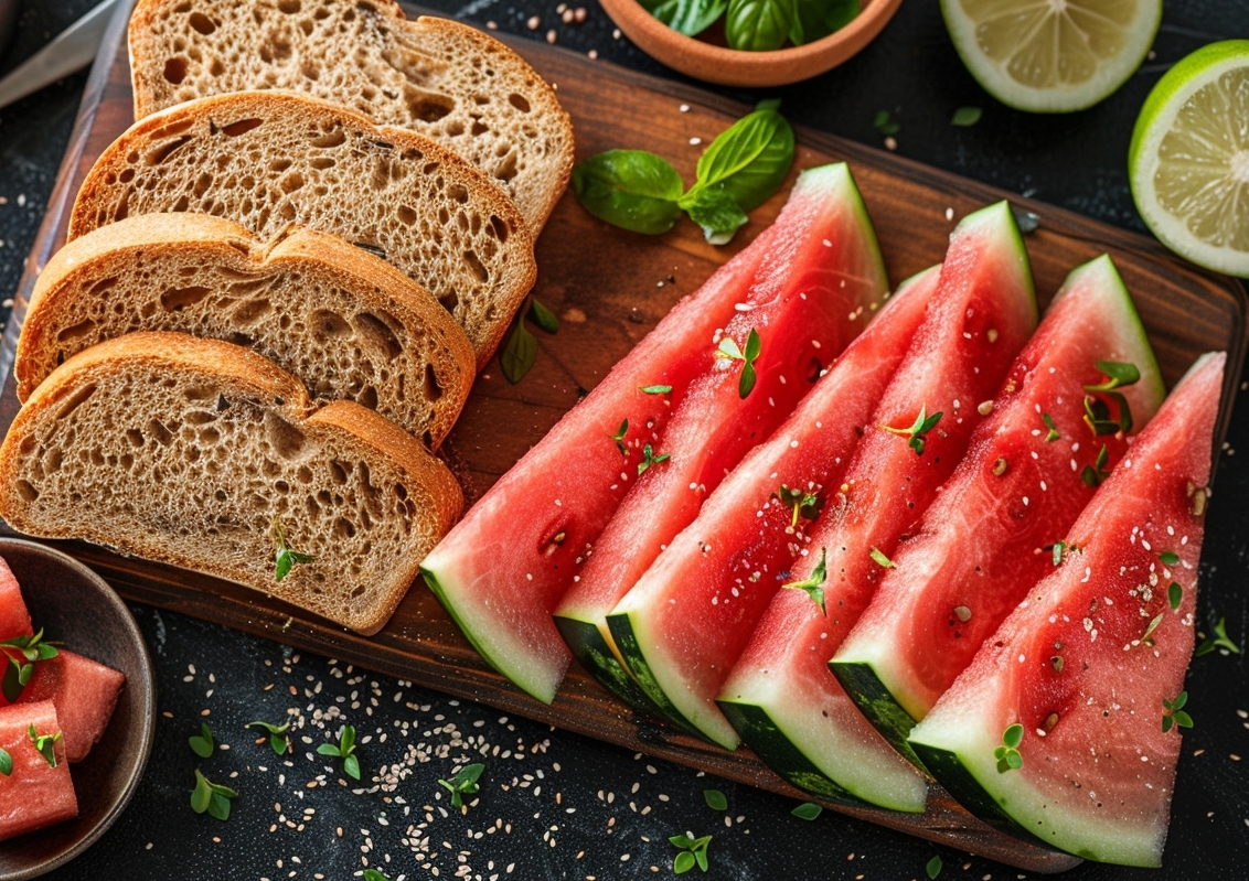 Однако при отсутствии вышеперечисленных болезней, а также проблем с ЖКТ и сердечной или почечной недостаточности употреблять арбуз с хлебом можно, только лучше выбирать цельнозерновой или ржаной из-за низкого гликемического индекса.