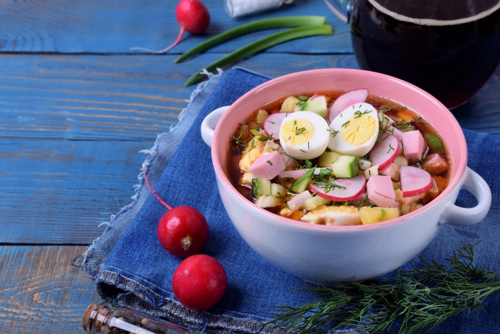 Чтобы окрошка получилась полезной, нужно заменить колбасу мясом, рассказала в беседе с «Радио 1» врач-диетолог Елена Соломатина. По ее словам, можно отдать предпочтение постной говядине, индейке, птице или телятине. Также важно обратить внимание на то, чем заливается это блюдо.