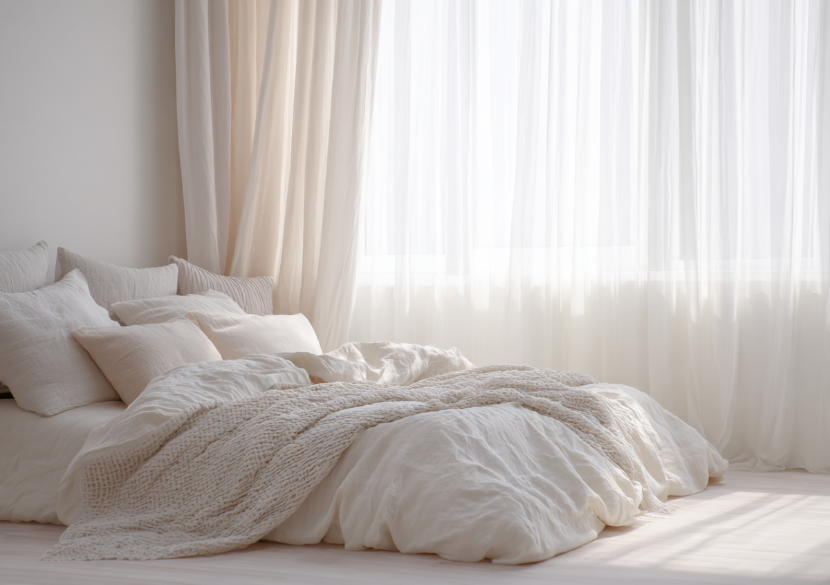 Интерьер, который восстанавливает, строится на принципах «мягкой архитектуры». Главным модератором здесь выступает текстиль. Ткани — это не просто декор, это акустические и визуальные фильтры. Плотные шторы отсекают гул мегаполиса, а многослойные фактуры на кровати гасят эхо в комнате, создавая ощущение «защищенного кокона». В такой среде мозг наконец-то отключает режим бдительности, позволяя нам войти в состояние глубокой релаксации.