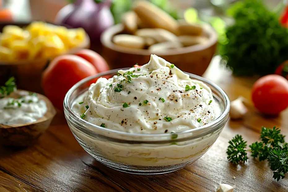 Кефирный/йогуртовый соус (тзацики): натуральный йогурт или кефир, огурцы, чеснок, зелень. Содержит белок, пробиотики (полезные для микробиома), меньше калорий. Такой соус не только безопасен, но и полезен для пищеварения.