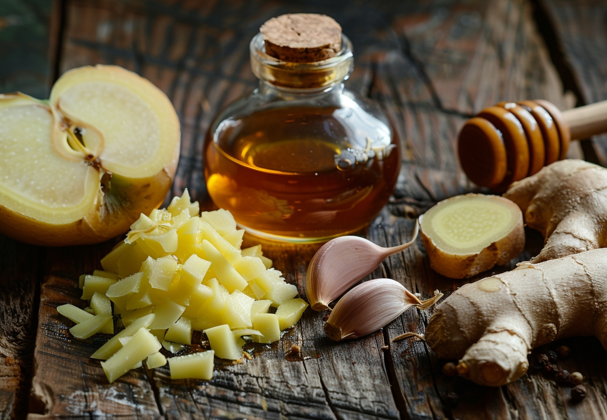 Кардиолог Антон Клубер рассказал о народном методе снижения уровня холестерина, которым пользовались еще прошлые поколения. Для этого понадобится один небольшой кусочек имбиря, перетертый зубчик чеснока, столовая ложка яблочного уксуса и чайная ложка меда. Все ингредиенты смешать в блендере и переложить в банку.
