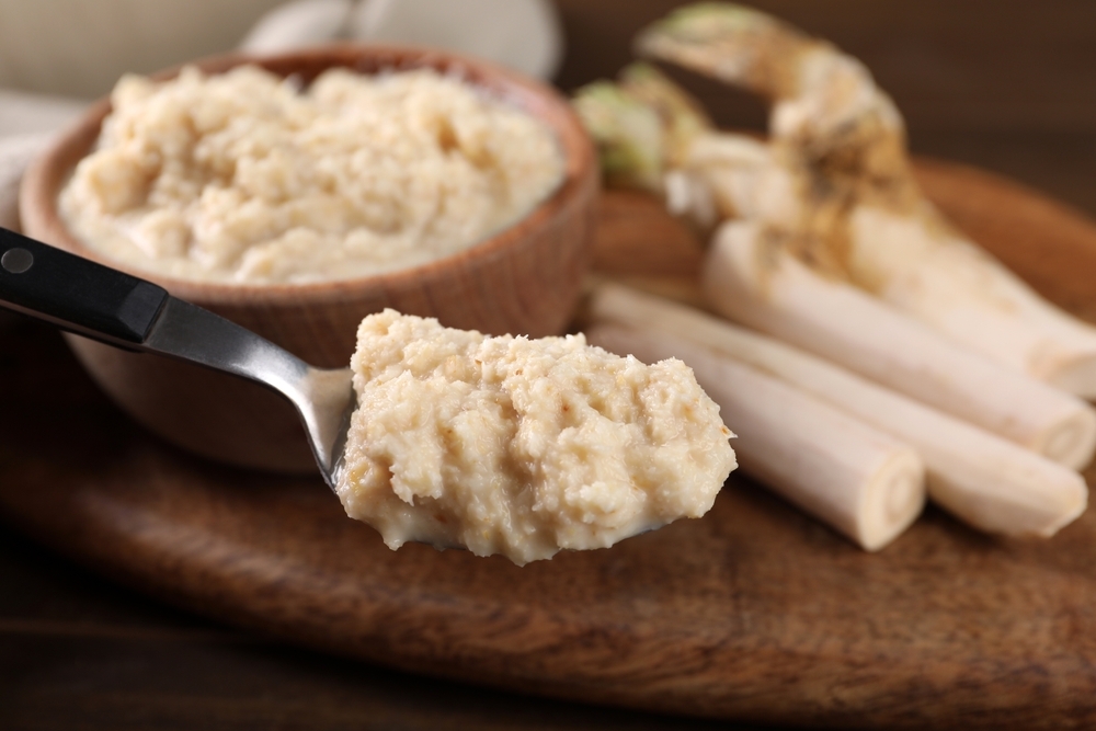 Эксперты советуют отдавать предпочтение не готовому продукту в банке, а свежему корню. Добавлять его в рацион лучше всего в виде соуса или приправы: натереть корень и смешать с любыми ингредиентами на свой вкус. Это могут быть сметана, помидоры, свекла и так далее, рассказали врачи.